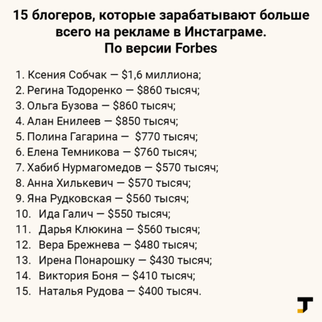 Forbes впервые составил рейтинг российских блогеров, которые больше всего зарабатывают на рекламе в Инстаграме. Данные проанализировали за период с 1 июня 2018 года по 31 мая 2019 года.