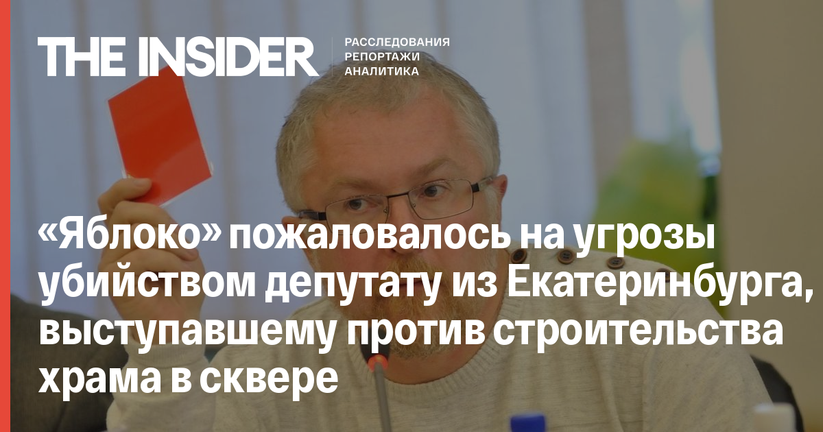 «Яблоко» пожаловалось на угрозы убийством депутату из Екатеринбурга, выступавшему против строительства храма в сквере
