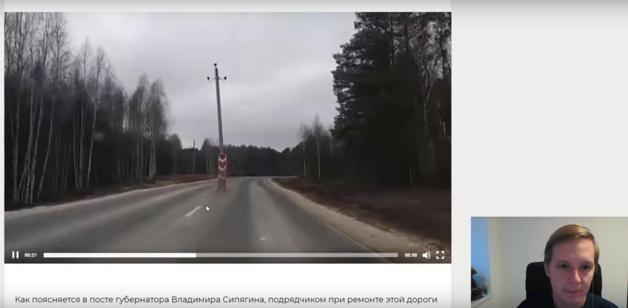 Известный видеоблогер Дмитрий Иванов (Kamikadzedead) разместил у себя на канале ролик, в котором поддержал слова губернатора Владимира Сипягина о “дороге со столбами” в Гороховецком районе.