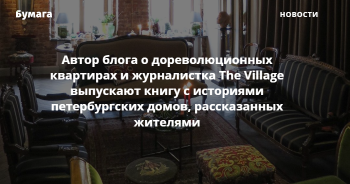 Автор блога о дореволюционных квартирах Максим Косьмин анонсировал выход книги «Истории домов Петербурга, рассказанные их жителями», которую он написал вместе с журналисткой The Village Юлией Галкиной и фотографом Антоном Акимовым. По словам Косьмина, тираж поступит в книжные магазины примерно в середине декабря 2019 года.