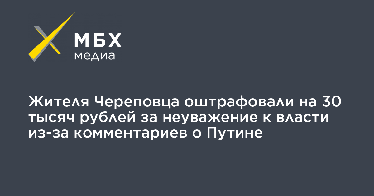 Жителя Череповца оштрафовали на 30 тысяч рублей за неуважение к власти из-за комментариев о Путине