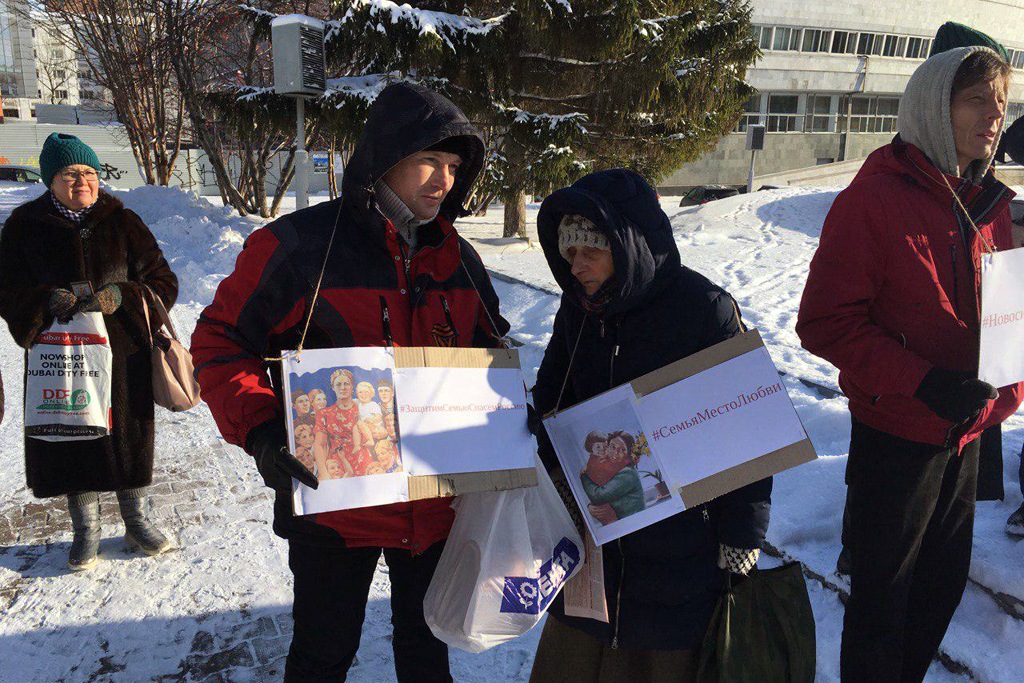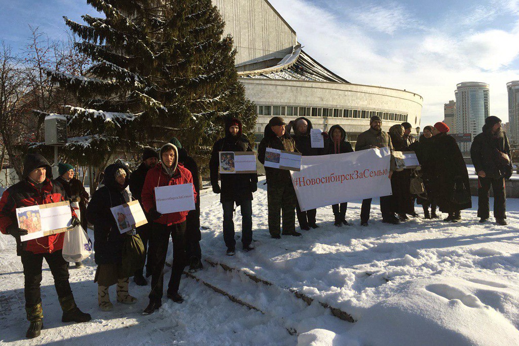 Акцию против принятия законопроекта о домашнем насилии организовали новосибирский «Координационный совет в защиту общественной нравственности и традиционных семейных ценностей» и местное отделение «Движения Сорок Сороков». В пикете 23 ноября также приняли участие сторонники «Национально-освободительного движения». По оценкам корреспондента Тайги.инфо, на улицу вышли около 40 человек.