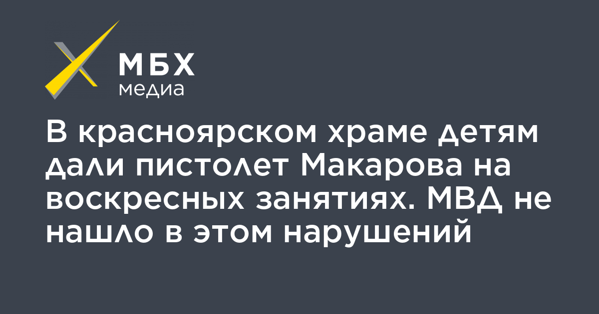 Красноярское МВД не нашло нарушений в том, что детям дали пистолет Макарова на воскресных занятиях во дворе храма иконы Божьей Матери, которые прошли в марте. Об этом говорится в ответе ведомства юристу Евгению Калиманову, который ранее пожаловался в полицию, сообщает «Сибирь. МБХ медиа».