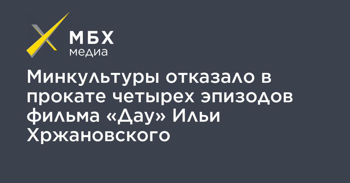 Министерство культуры РФ отказалось выдать прокатное удостоверение четырем эпизодам многосерийного фильма «Дау» режиссера Ильи Хржановского, сообщает «Интерфакс» со ссылкой на ведомство.