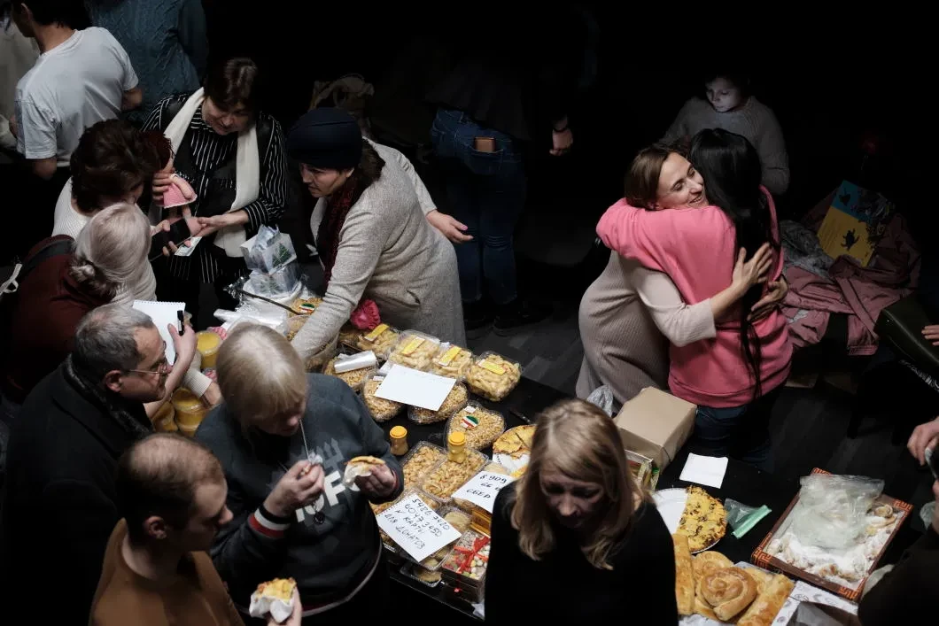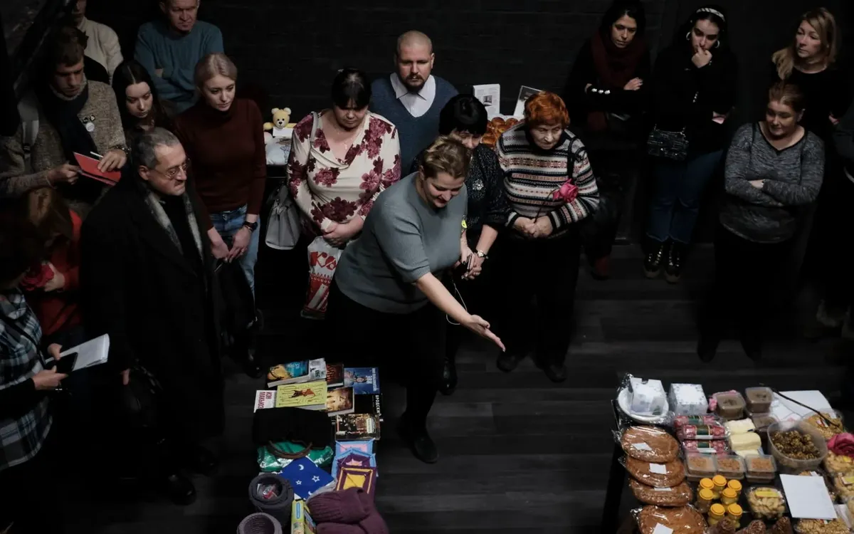 …Вот мама Ивана Подкопаева («московское дело», осужден на 2 года) разрезает на куски собственноручно приготовленную пиццу и раздает ее всем желающим. Мама Ани Павликовой (под домашним арестом, идет суд) и сестра Самириддина Раджабова («московское дело», сидит в СИЗО, суд по существу начнется в эту среду, 27 ноября) подписывают «товар»: картины, написанные политзэками в заключении, поделки ручной работы (вышивки, вязаные палантины, шарфы, шапки, варежки и носки, елочные украшения и игрушки).