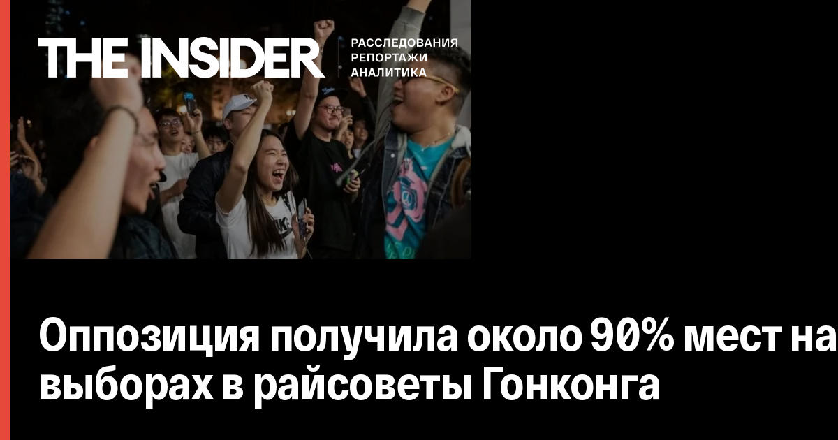 Кандидаты продемократического блока могут получить 396 мест из 452 по итогам выборов в райсоветы — почти 90%. Об этом сообщает радиостанция RTHK. Ранее у проправительственного блока было 75% мест.