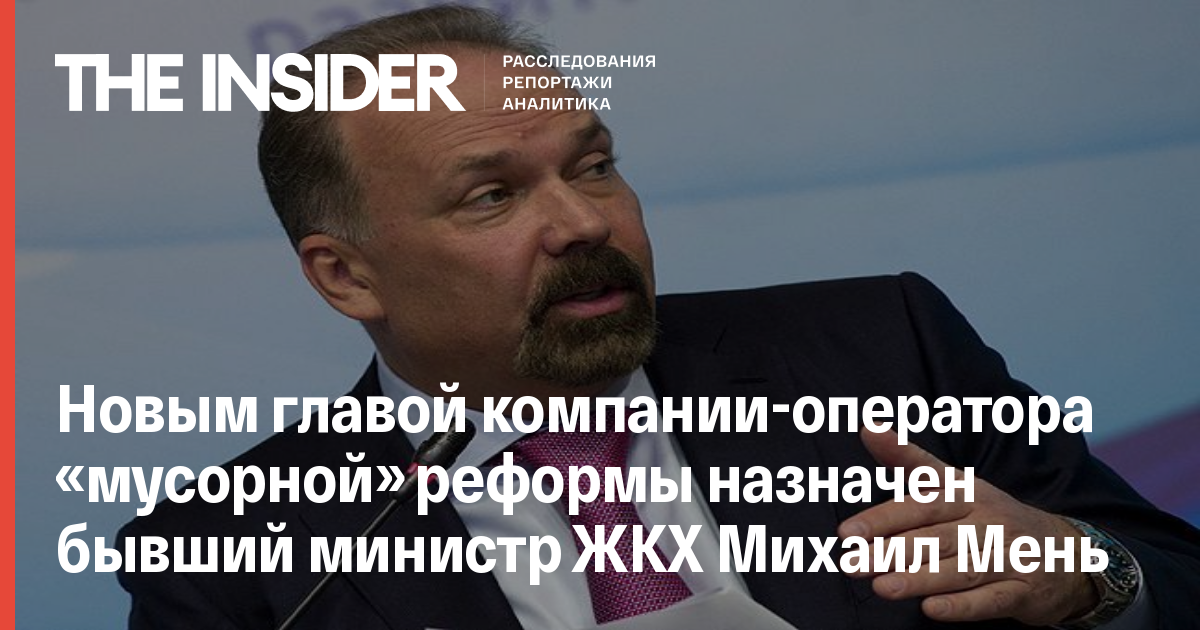 Экс-министр ЖКХ Михаил Мень станет новым главой «Российского экологического оператора». Об этом пишет РБК со ссылкой на вице-премьера Алексея Гордеева.