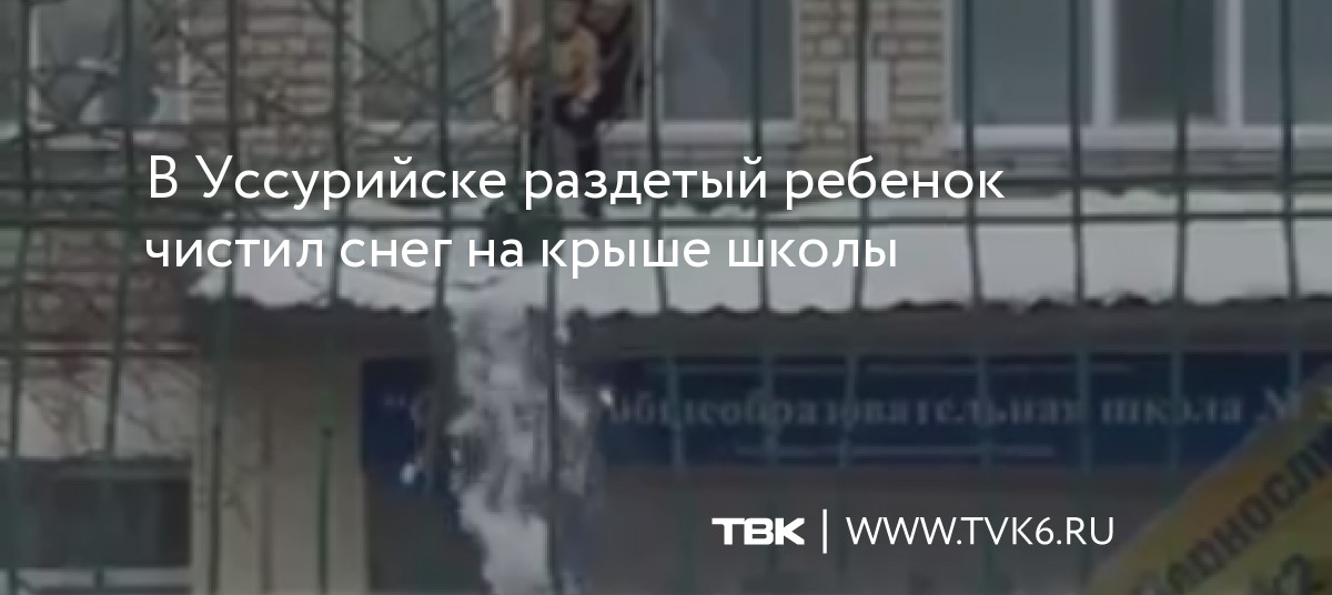 В Уссурийске очевидцы сняли на видео ребенка, который без верхней одежды чистил снег на козырьке школьного крыльца. Видео быстро распространили по российским соцсетям.