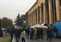 Как сообщает "Сова", протестующие не позволили проехать к парламенту депутату от "Грузинской мечты" Темуру Чкуасели. Манифестанты, среди которых были и оппозиционные депутаты, остановили внедорожник депутата на улице Леси Украинки. Протестующие свистели в свистки и скандировали "Раб!". Прибывший на место Сирадзе заявил, что депутат сможет проехать к парламенту по другой дороге.