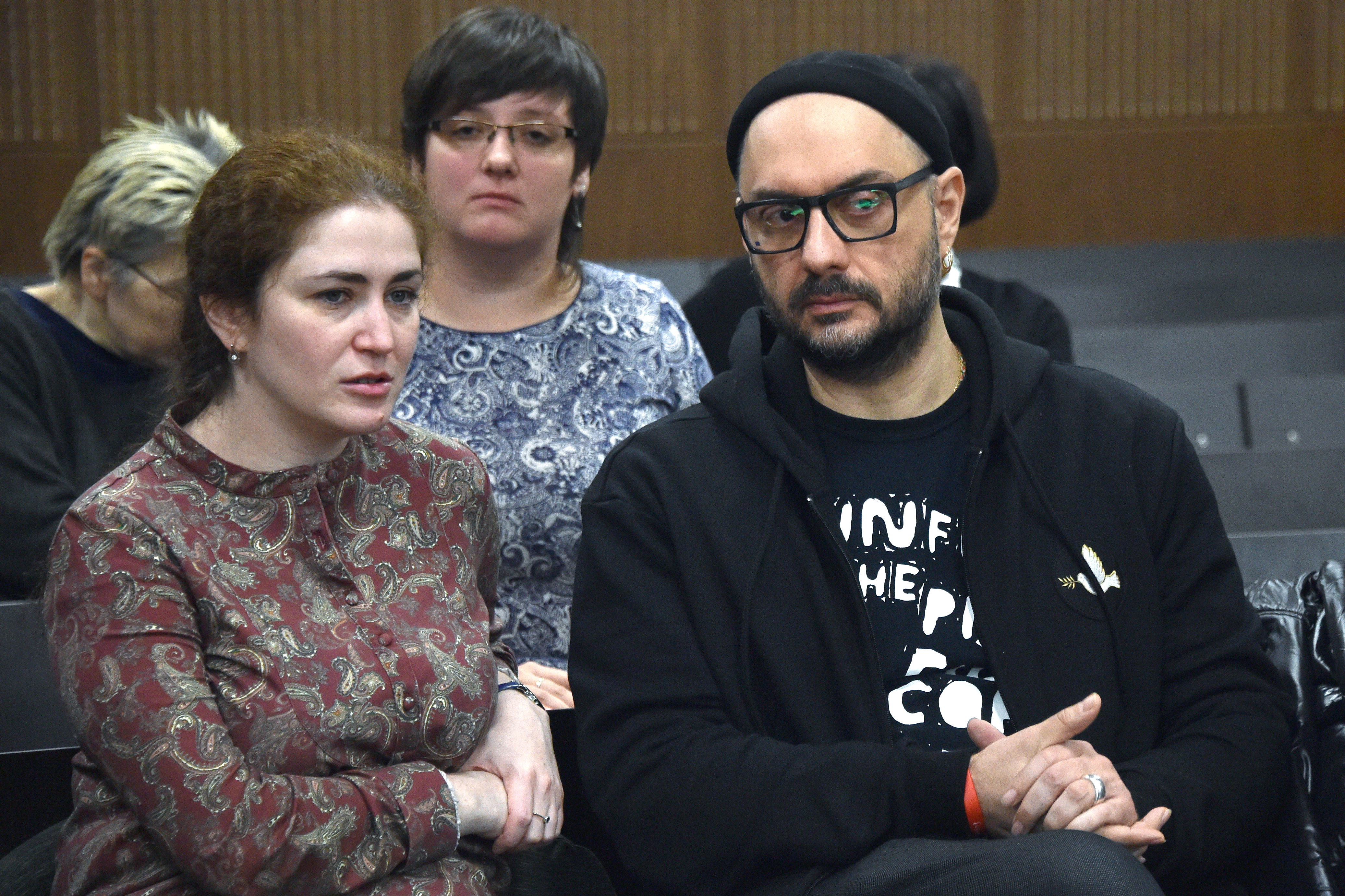 Сам Серебренников на ней не был, так как днём во вторник он должен присутствовать на заседании суда по делу "Седьмой студии", а ночью снимает новый фильм.