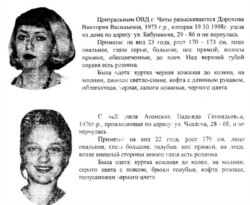 – От милиции никаких результатов не было. Нам пришлось самим давать объявления на телевидении, в газеты и клеить на столбы фотографии. Больше средств у нас не было. За один год я похоронила мать и племянника. Я обращалась ко всем людям: помогите найти мне мою дочь! Я готова была свою жизнь за нее отдать... – говорит Людмила Сергеевна.