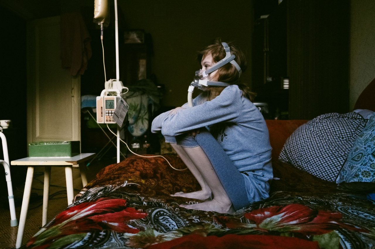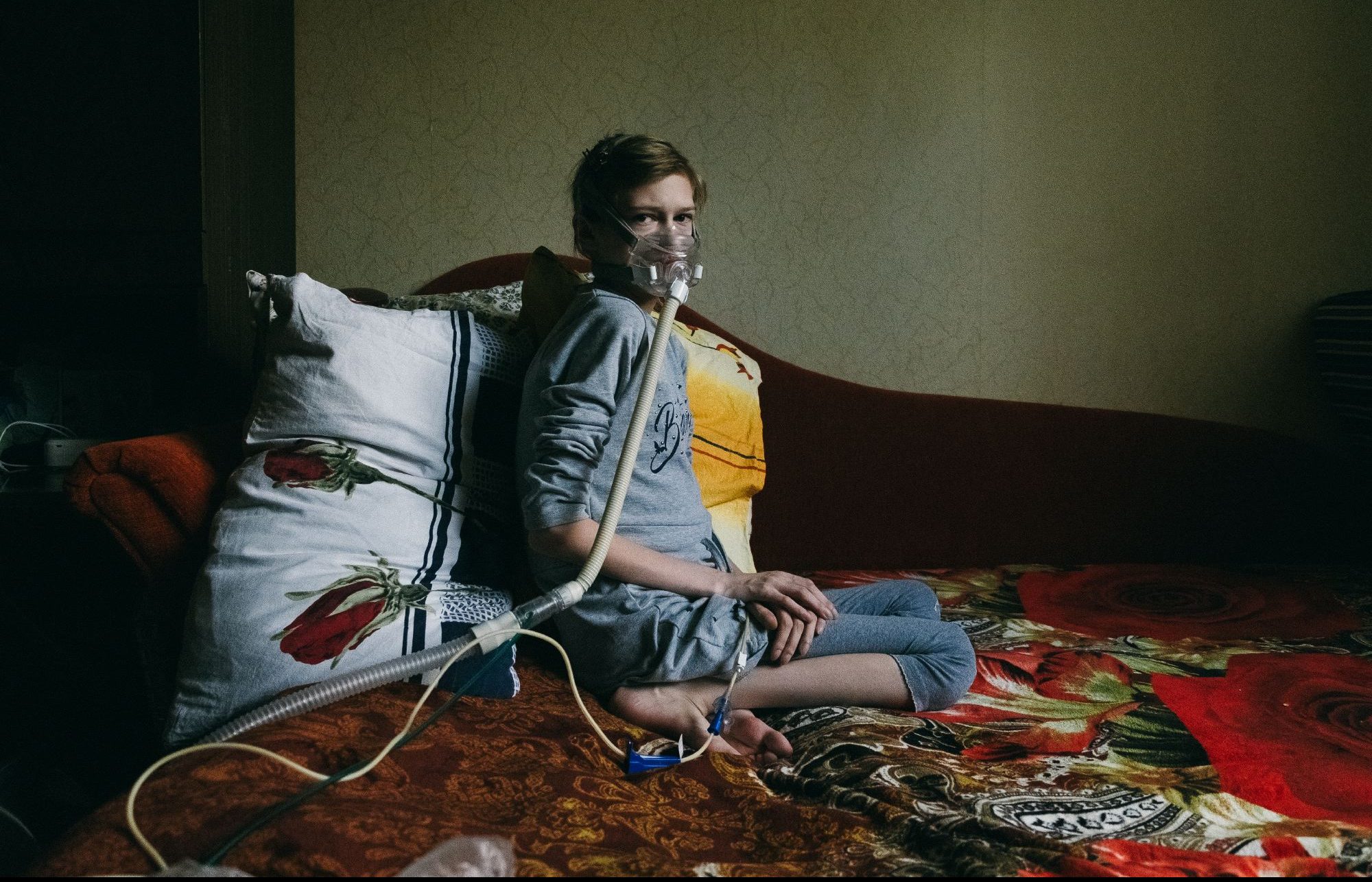 Пока Оля могла, она ходила в школу. Когда узнали о затемнении в легких, Олю направили в туберкулезную больницу. После этого учительница в школе считала Олю заразной и даже прогоняла с урока, когда та сильно кашлялаФото: Мария Ионова-Грибина для ТД Мне подает руку женщина с уставшим заплаканным лицом — это Елена. А в глубине комнаты глазами здоровается худенькая девушка с кислородной маской на лице — Оля.