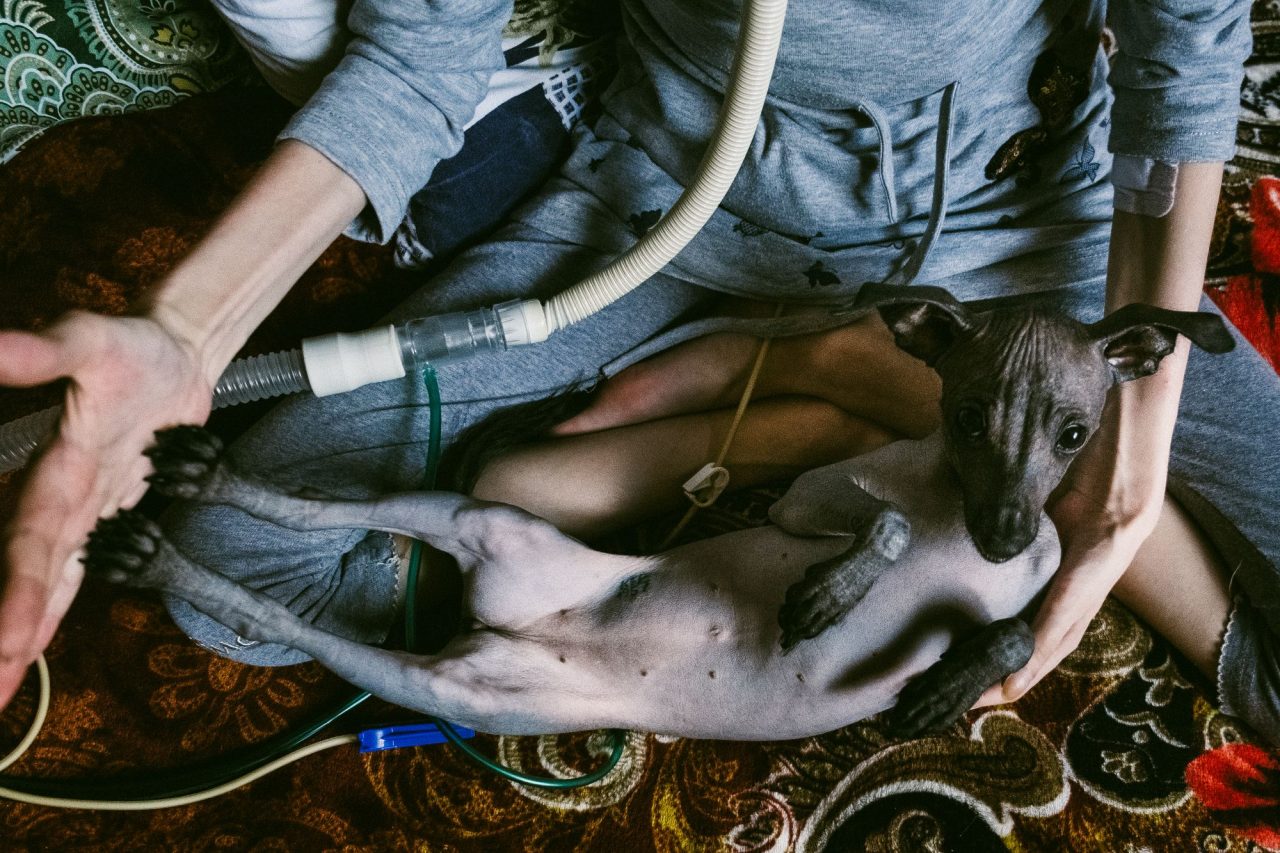 Недавно Оле подарили собакуФото: Мария Ионова-Грибина для ТД Пока были силы, Оля училась. Муковисцидоз постепенно отнимает силы и возможность дышать. С каждым годом Оля становилась худее и слабее, часто кашляла, в школе ее травили. Учителя то и дело звонили Елене и говорили: «Заберите дочь, она кашляет и мешает вести урок!» Денег постоянно не было — мизерная зарплата уходила на лекарства. Народ на улице шушукался прямо Елене в лицо. А когда она вывозила дочь на коляске на улицу, подходили и без стеснения разглядывали, как зверька в зоопарке.
