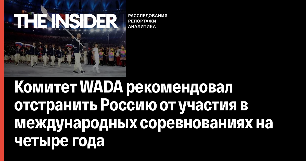 Комитет Всемирного антидопингового агентства (WADA) рекомендовал отстранить Россию от участия в международных соревнованиях на четыре года за нарушение антидопинговых правил. Об этом сообщает The New York Times.