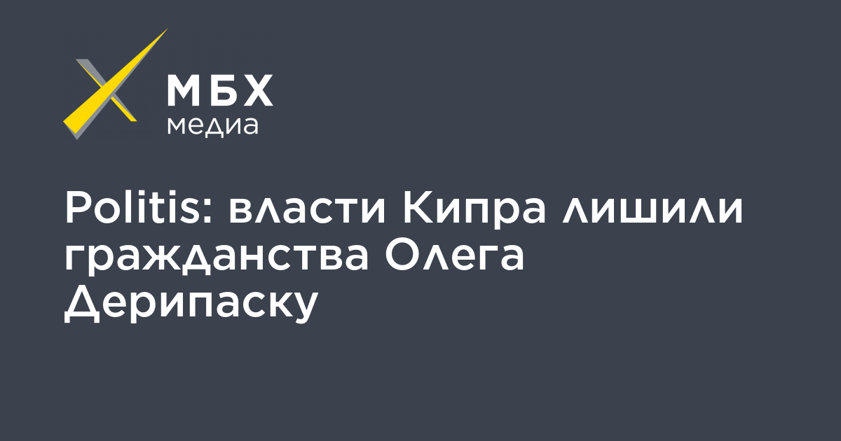 Российский бизнесмен Олег Дерипаска был лишен гражданства Кипра, сообщила кипрская газета Politis, на это обратил внимание журнал Forbes.