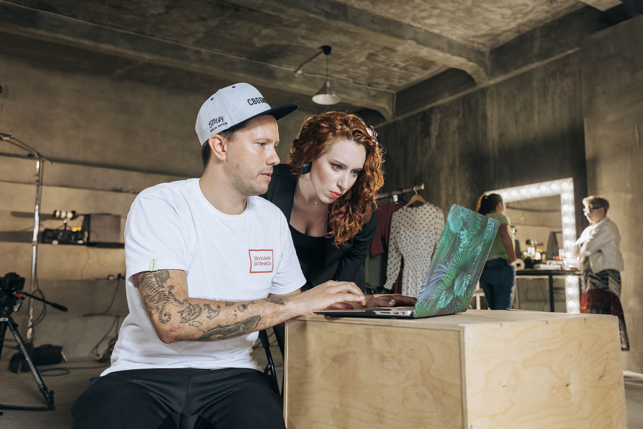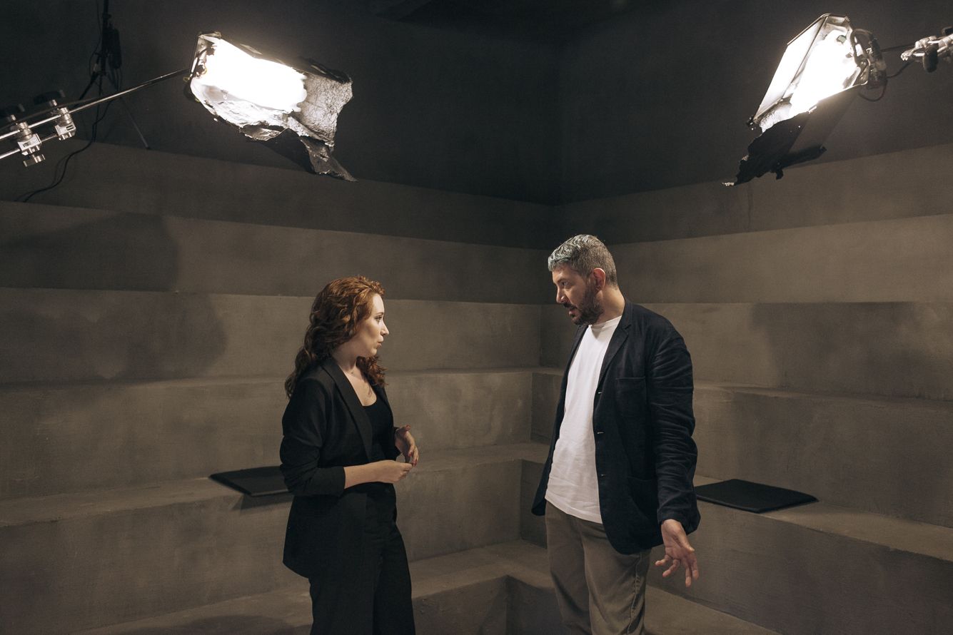Shikhman takes advantage of a brief pre-shooting interlude to discuss her questions with the show’s director, Nikita Loyk. “Sometimes, the two of us fight,” the journalist says. “I mean, we’re two different creative units, so we can talk shit at each other for a long time. When that happens, he typically brings me over to the side of the room and tells me I have no right to yell at him in front of the crew because he’s the boss around here. Then I say, ‘I listen and obey,’ and we make up and keep working.”