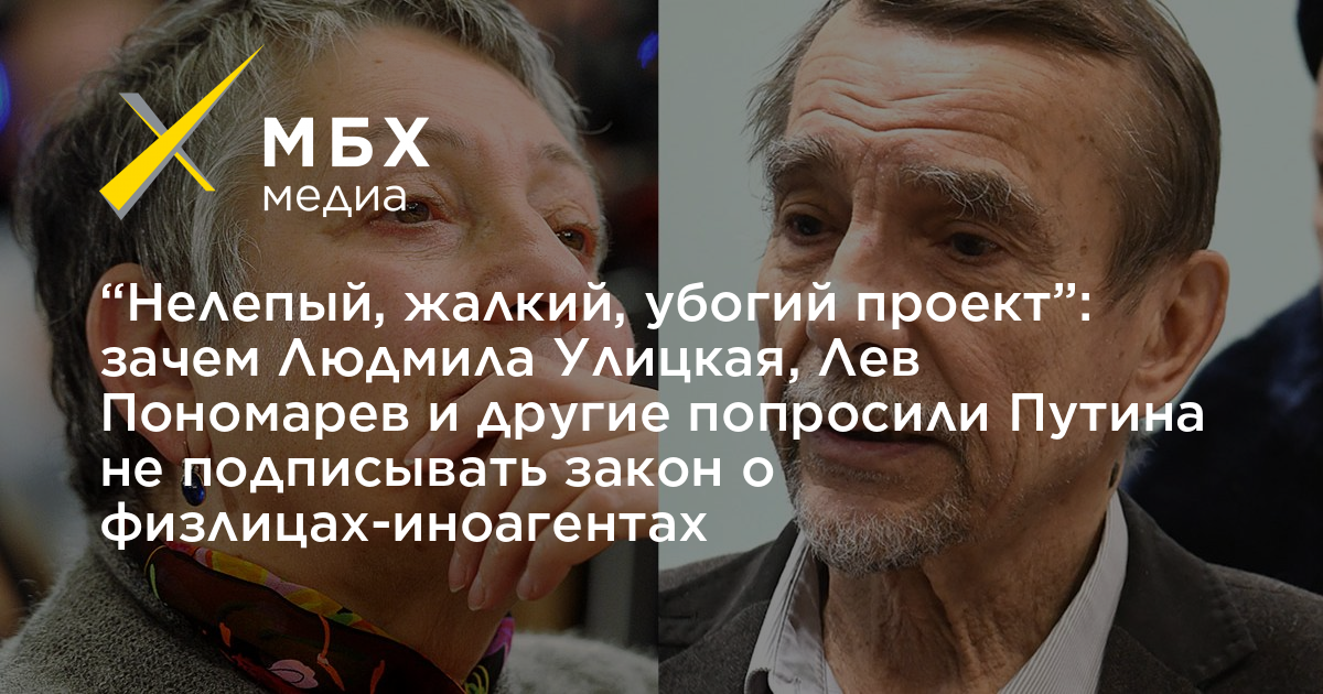В России обращение к президенту — последняя надежда на решение проблемы, когда все остальные уровни власти уже пройдены. Правозащитники, журналисты и представители творческой интеллигенции подписали обращение, в котором призвали президента не подписывать закон о физлицах-иноагентах. Одни из подписантов, правозащитник Лев Пономарев и писательница Людмила Улицкая, рассказали «МБХ медиа», что такие обращения — один из способов быть услышанными, но диалог государства и общества сейчас нарушен, поэтому конкретного результата вряд ли получится добиться.