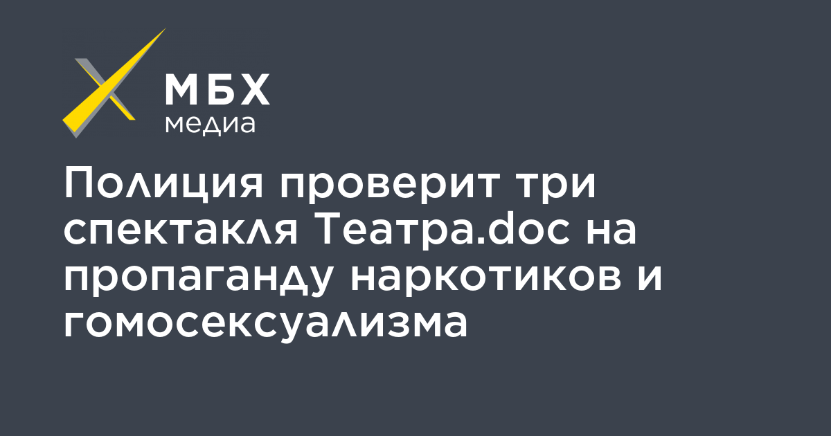 МВД проверит три спектакля Театра.doc на пропаганду наркомании, гомосексуализма и терроризма. Об этом «МБХ медиа» рассказал адвокат «Правозащиты Открытки» Сергей Бадамшин.