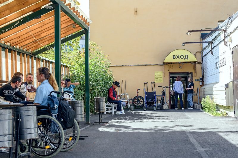 Плотно наше общение пошло в 2016 году, мы начали делать большой совместный проект и стали общаться «домами». До этого я плохо представляла, как у них все это налажено. Рядом с ними есть отделение милиции, оно привлекает больше внимания. Напротив, через дорогу от них, стоит четырехзвездочный отель, туда наша газета заселяет гостей. В полутора километрах — Московский вокзал, где, честно говоря, бездомных гораздо больше, чем здесь.