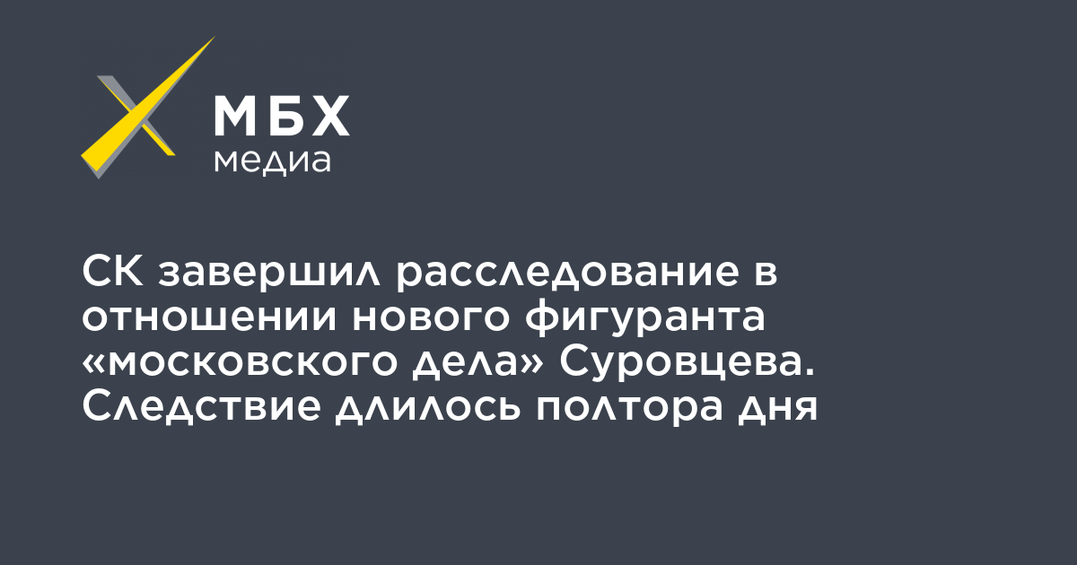Следователи за полтора дня завершили расследование уголовного дела в отношении Сергея Суровцева — нового фигуранта «московского дела». Об этом «МБХ медиа» сообщил его адвокат Василий Кушнир.