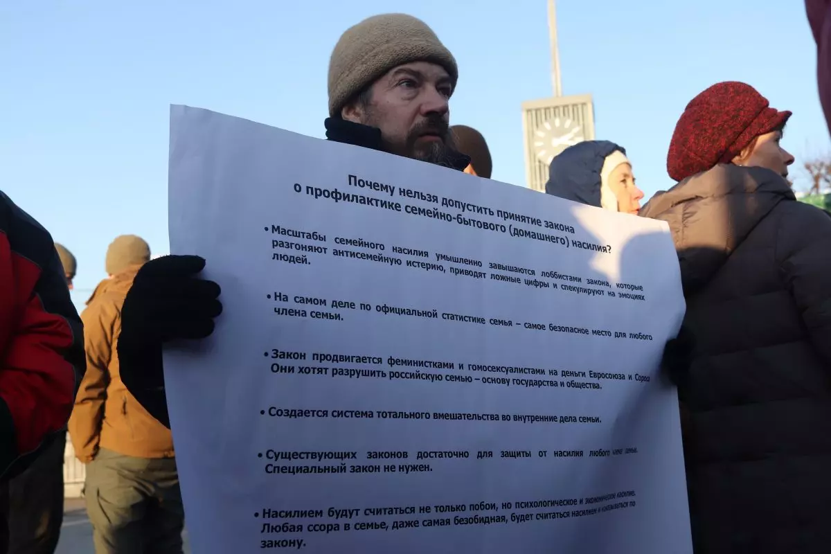 Алена Попова тоже винит в переписывании законопроекта православных активистов: «Члены Совета федерации больше делают упор на то, что пришло десять человек на митинг против закона о профилактике семейно-бытового насилия, чем обращают внимание на полуторатысячный митинг реальных людей, где реальные жертвы, которые просят: дайте этот закон».