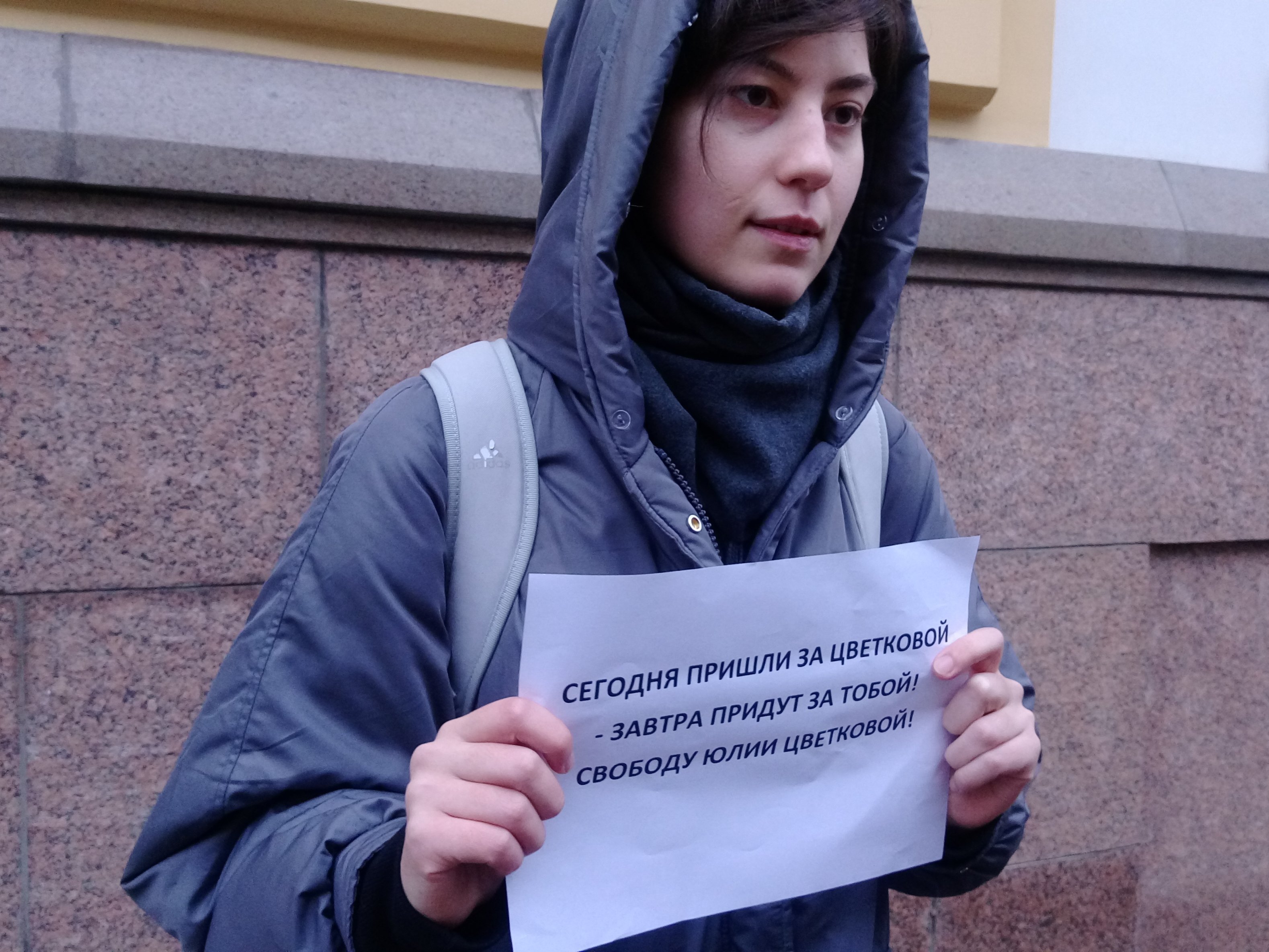 В Москве у Генпрокуратуры прошел одиночный пикет в поддержку фем-активистки Юлии Цветковой, арестованной в Комсомольске-на-Амуре по подозрению в «распространении порнографии», передает корреспондентка «Полит.ру» Аня Гольдман.