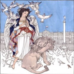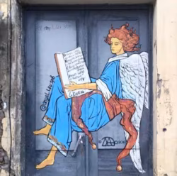 На обшарпанных строительных заборах, исчерканных жирными каракулями из баллончиков с краской, в закопченных питерских арках, на грубых входных дверях тошнотворного красно-коричневого цвета в Петербурге стали появляться ангелы и львы.