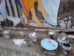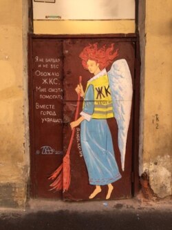 – У нас даже есть специальный хэштэг для наших работ – “обожаем ЖКС”, мы и правда к ним хорошо относимся. Самое интересное, что бабушка, которая постоянно закрашивает наших ангелов, - это мама нашей буфетчицы. Да, Питер маленький город, мы об этом случайно узнали. Они просто выполняют свои обязанности, им сказали – они закрашивают. Может, они сами-то не очень хотят, но приходится. ЖЭК не оценил наших попыток ему помочь и сделать город красивее. И, вероятно, это установка сверху. Главный художник города – выпускник нашей кафедры, мы с ним даже знакомы, но в частном разговоре он нам сказал – ребята, я все понимаю, это очень хорошо и красиво, но – нельзя. Мы стараемся обходить вопросы веры и политики и поэтому даже не знаем, с какого верха ветер дует. Но мы знаем, что сейчас в городе обсуждается закон о легализации стрит-арта, и мы очень надеемся на этот закон. Тем более, что общественное мнение на нашей стороне.