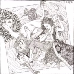 – Мы решили украшать эти замызганные дворики, парадные, двери – и туда пришли наши герои, Ангел и Лев. Рисуя их, мы применяем все, что изучаем – тут и композиция, и стенопись, и подбор колеров. Работа у нас командная, мы заранее договариваемся, кто красит волосы, кто шарф, кто лицо. Очень важен рисунок – у кого-то лучше получаются руки, у кого-то лица, у кого-то орнаменты – каждый выбирает, что ему по душе. Мы изучаем мозаики и эмали, и это тоже помогает – может, мы и к этому постепенно придем. Сюжет зависит от места, от нашего состояния.