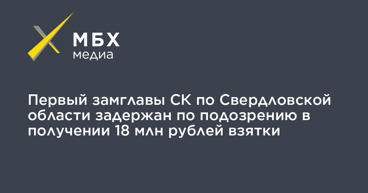 Первый замглавы СК по Свердловской области задержан по подозрению в получении 18 млн рублей взятки