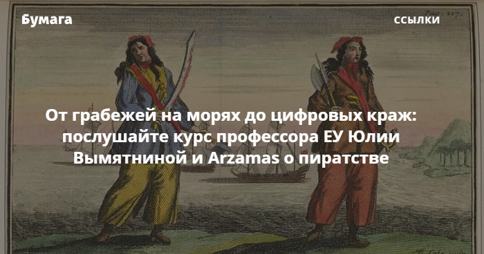 Профессор факультета экономики Европейского университета Юлия Вымятнина записала для Arzamas Academy курс «Экономика пиратства». Аудиолекции рассказывают о том, почему пиратство сопутствует торговле и как влияло на культуру от античности до нашего времени.