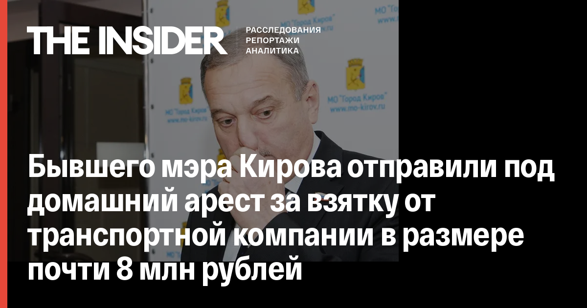 Бывшего мэра Кирова отправили под домашний арест за взятку от транспортной компании в размере почти 8 млн рублей