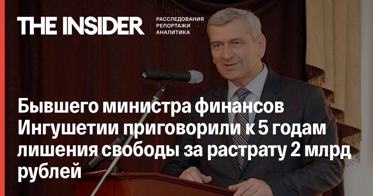 Бывшего министра финансов Ингушетии приговорили к 5 годам лишения свободы за растрату 2 млрд рублей