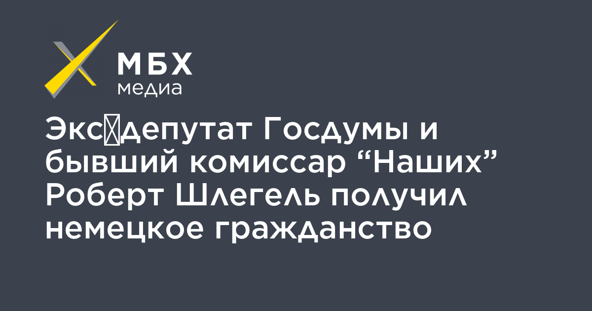 Бывший депутат Госдумы Роберт Шлегель, который также был одним из лидеров движения «Наши», весной 2019 года получил немецкое гражданство. Об этом сообщает немецкая газета Süddeutsche Zeitung.