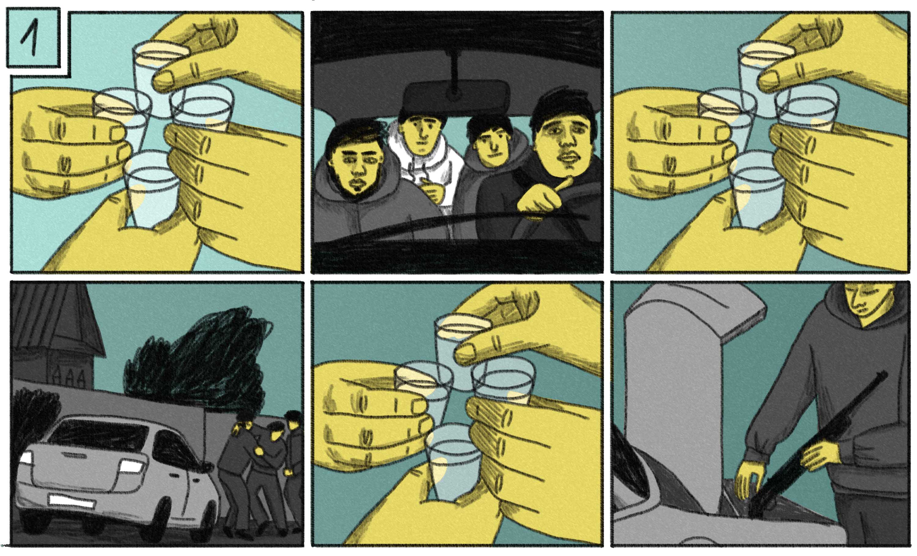 Впрочем, вспоминали свидетели, обратно в Конь-Колодезь они не поехали — остановились неподалеку от села, чтобы выпить еще. Речь снова зашла о риэлторе и деньгах, которые тот задолжал Кудинову; в итоге компания развернулась и отправилась обратно к дому Курбатова. Согласно версии обвинения, там Стародубцев достал из машины желтый пакет, развернул его и показал товарищам «двуствольное ружье с отпиленным прикладом и стволом». «Он спросил у Стародубцева, зачем ему ружье. Стародубцев сказал, что это для того, чтобы не было страшно в чужой деревне», — приводятся в обвинительном заключении показания Корнеева.