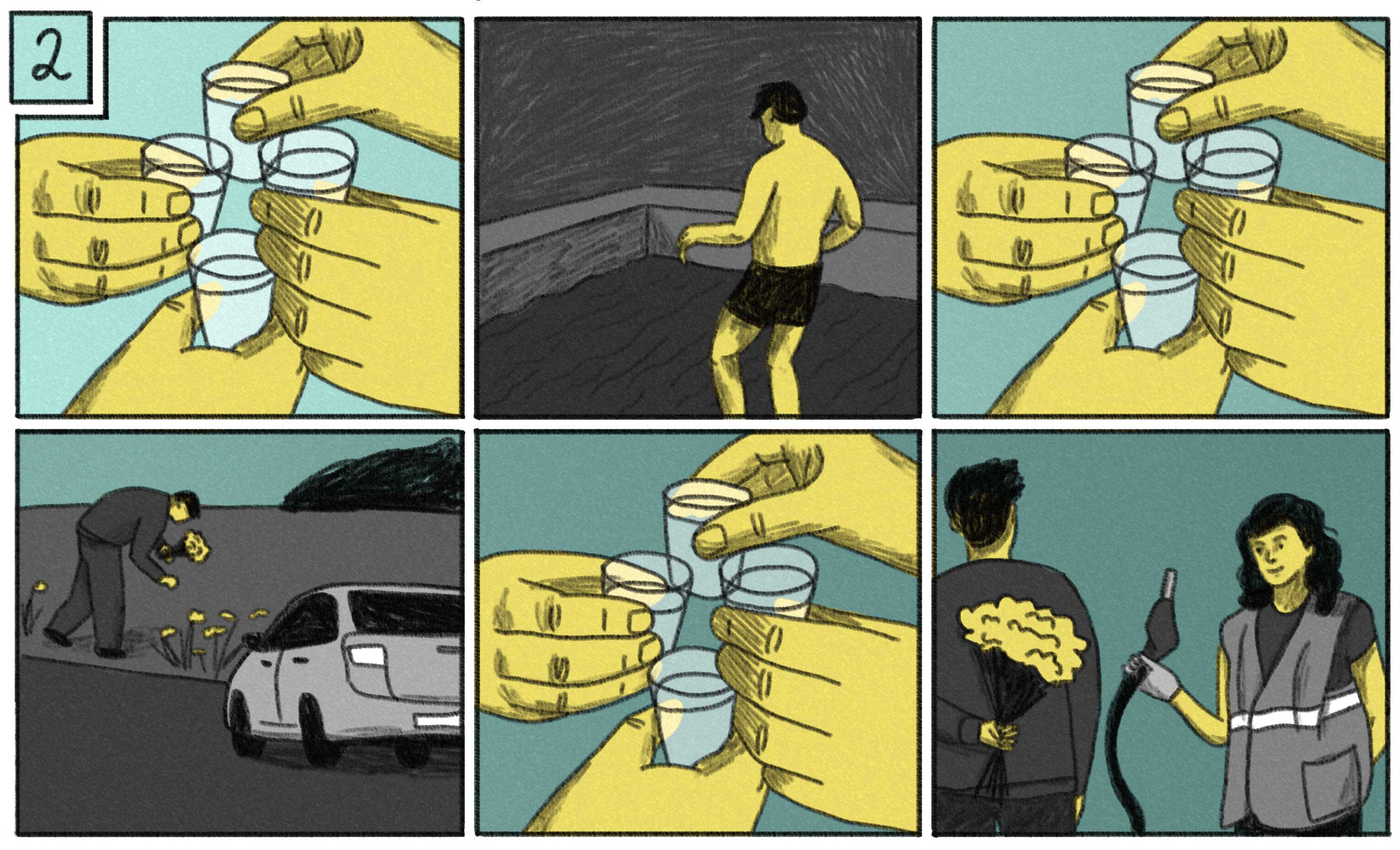 «Подбегают, сбивают с ног сразу. А у меня очки солнечные, я с телефоном, в сланцах, в футболке. Сразу в наручники, электрошокером в ногу. "Деревню Марьино знаешь?". Я говорю: "Ну, был там пару раз". Ну и все, пару разрядов, под руки хватают, на пол ["Газели"] бросают», — вспоминает свое задержание Стародубцев, помешивая чай в пластиковом стакане в придорожном кафе у трассы Липецк-Воронеж.