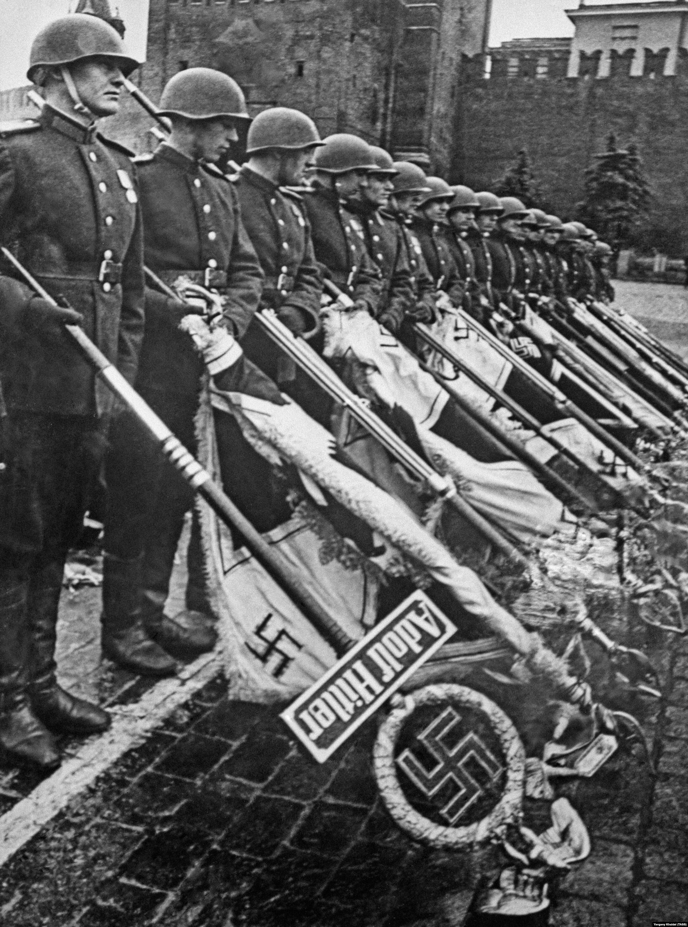- В январе 2018 года суд в Архангельске признал местного жителя Михаила Листова виновным в публичной демонстрации нацистской символики из-за хрестоматийной фотографии с парада на Красной площади в 1945 году. Поводом послужила фотография, на которой советские солдаты на Красной площади держат в руках трофейные знамена нацистской Германии.