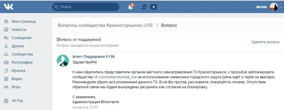 Мэрия Краснотурьинска в Свердловской области потребовала от администрации «ВКонтакте» заблокировать сообщество «Краснотурьинск LIVE», где публиковались городские новости. Об этом говорится на их странице в соцсети.