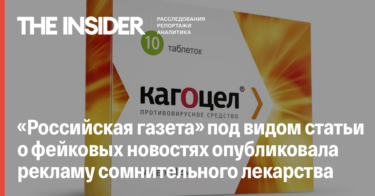 Тем не менее «Кагоцел» в России внесен в список жизненно важных препаратов. В 2018 году он, как утверждает производитель, был признан «самым назначаемым препаратом при лечении ОРВИ и гриппа» — несмотря на недосказанную эффективность и вероятное опасное побочное действие. А «Российская газета» уже не впервые вступается за честь сомнительного лекарства: в 2014 году она опубликовала статью Ирины Поленовой «Неврачебный прием. В медицинской сфере информационные войны особенно опасны», где так же, как сейчас Полина Кузнецова, опровергала слухи об опасности препарата для репродуктивной системы и старательно обходила тему отсутствия клинических испытаний и недоказанной эффективности.
