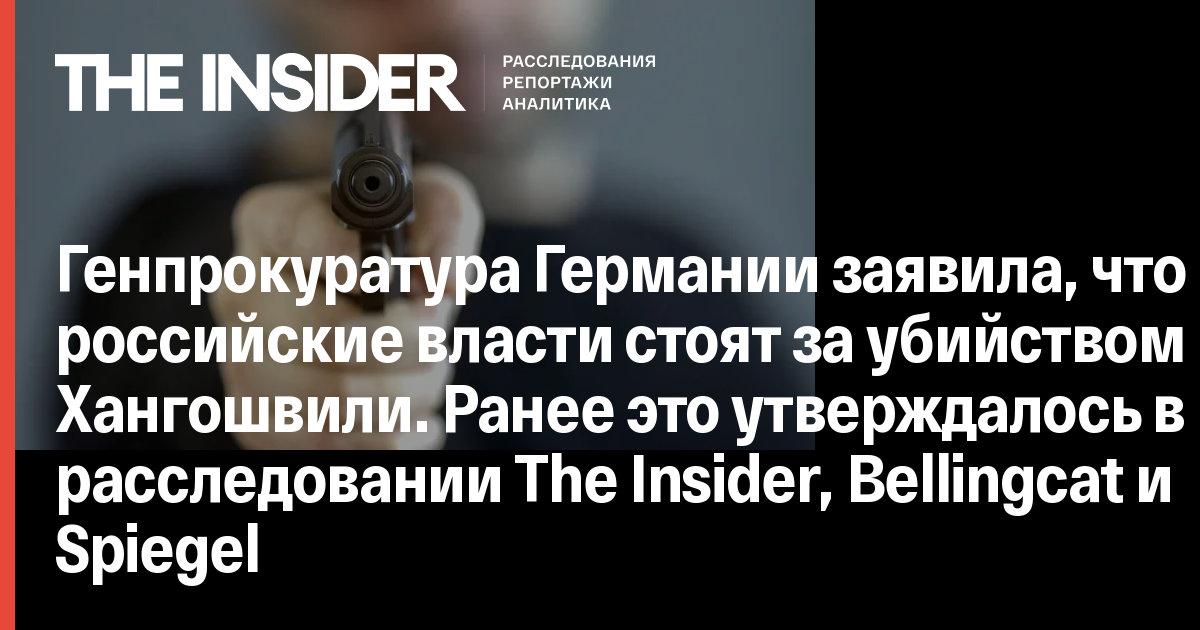 Генпрокуратура Германии заявила, что российские власти стоят за убийством Хангошвили. Ранее это утверждалось в расследовании The Insider, Bellingcat и Spiegel