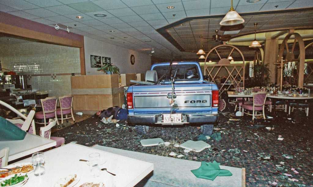 Ровно в этот момент с другого конца помещения в кафе через витрину въехал синий Ford Ranger. Мужчина за рулём открыл огонь по посетителям, ещё находясь в салоне машины. «Все женщины Киллина и Белтона (также город в Техасе. — Прим. ред.) — гадюки! Это то, что вы сделали со мной и моей семьей! Это то, что сделал со мной Белл… это день расплаты!» — кричал водитель, когда, открыв дверь пикапа, вышел из него, держа в каждой руке по пистолету — австрийский Glock 17 и Ruger P89. Первым он застрелил мужчину, упавшего из-за своего столика на пол и стоявшего на коленях. «Стоит ли оно того? Скажите, оно того стоит?» — спрашивал он у людей, подходя к ним вплотную перед выстрелом.