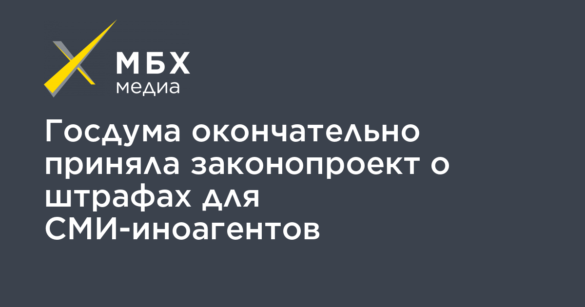 Госдума приняла в третьем и окончательном чтении законопроект о штрафах для СМИ, которые признаны иностранными агентами, об этом сообщает «Интерфакс».