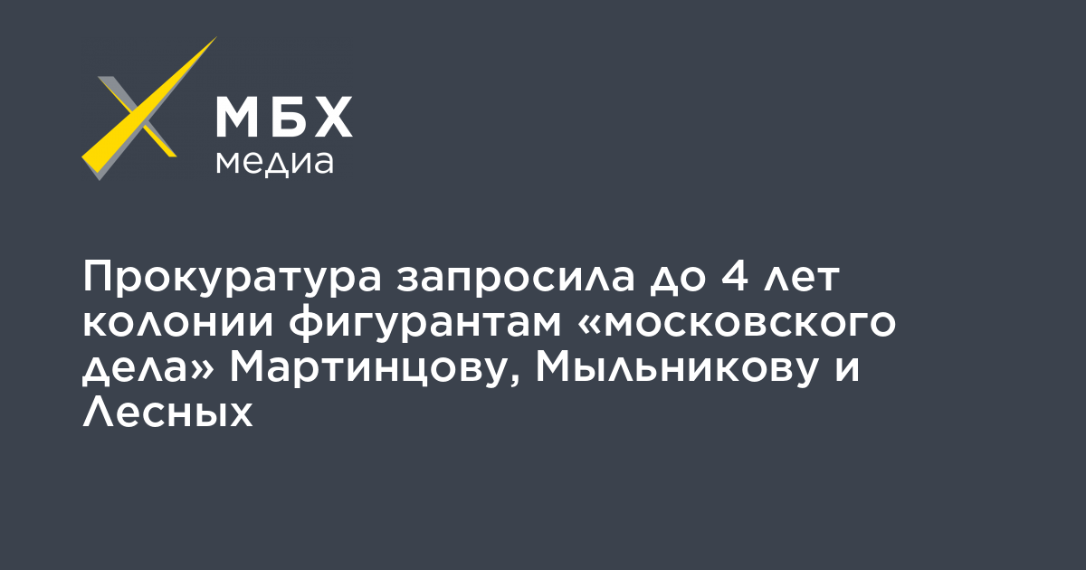 Прокуратура попросила приговорить фигурантов «московского дела» Максима Мартинцова, Егора Лесных и Александра Мыльникова к 3,5 годам, 4 годам, 3 годам колонии соответственно, передает корреспондент «МБХ медиа» из Мещанского суда.