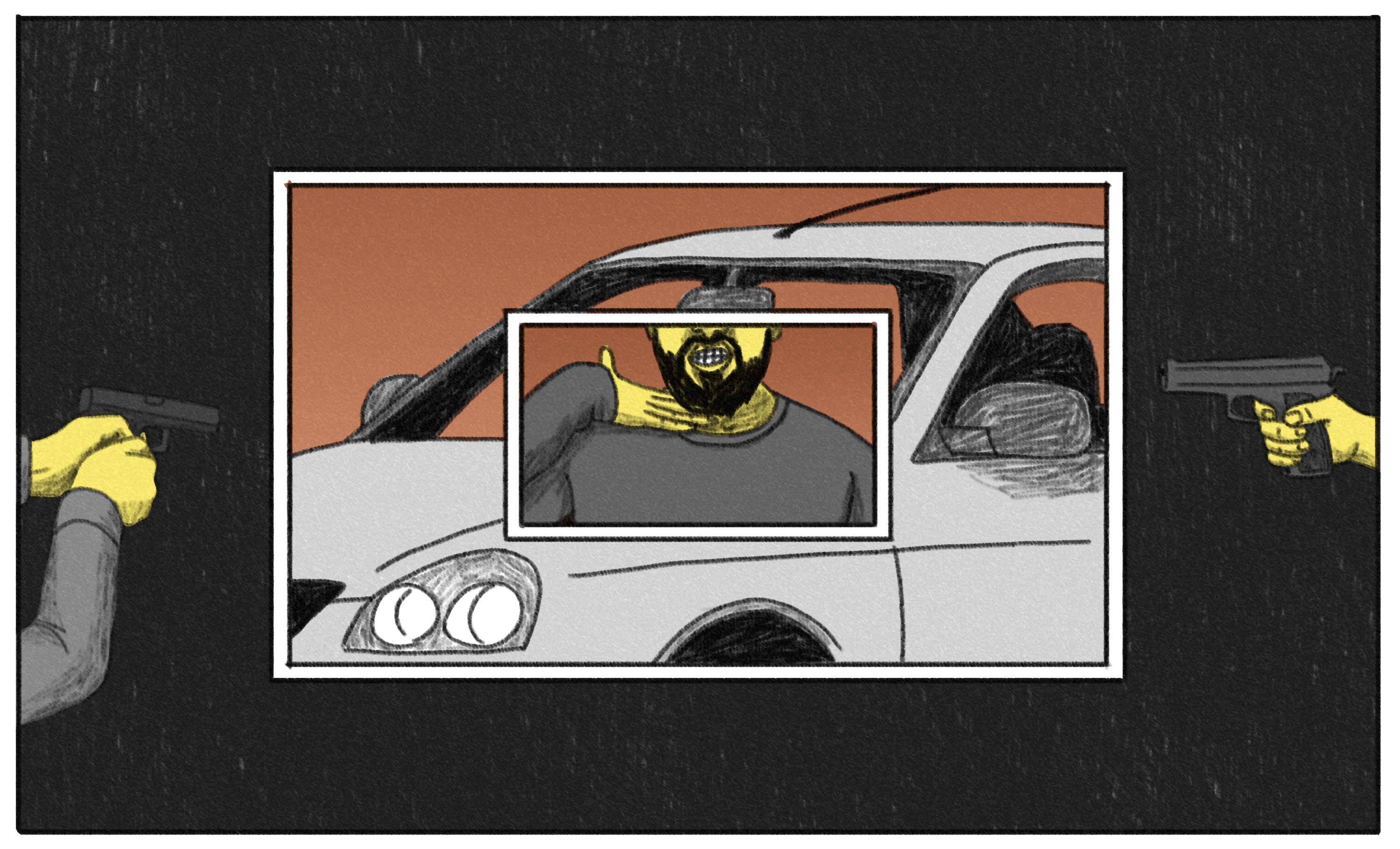 Вдова рассказывает, что сначала не придавала значения тому, что одна и та же «приора» появляется возле их дома, но потом поняла, что за рулем — брат человека, за убийство которого судили Жалалутдина. Но присяжные его оправдали. Умужат предупредила мужа, который, по ее словам, и сам заметил слежку, но не захотел обращаться в полицию, сказав, что «если суждено, он умрет».