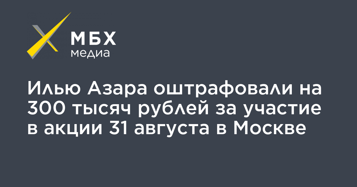 Мещанский районный суд Москвы оштрафовал журналиста Илью Азара на 300 тысяч рублей за участие в акции 31 августа в Москве. Об этом сообщает корреспондент «МБХ медиа».