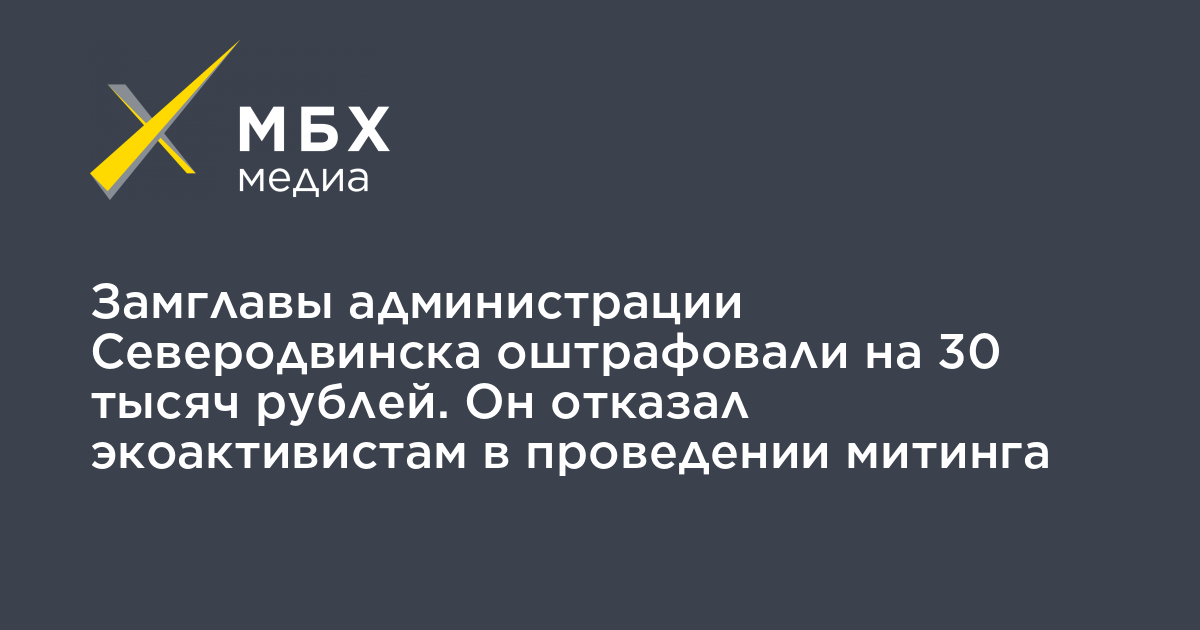 Северодвинский городской суд оштрафовал на 30 тысяч рублей заместителя главы местной администрации Олега Бочерикова за нарушение закона о публичных мероприятиях (статья 5.38 КоАП) из-за отказа в согласовании митинга экоактивистов. Об этом «МБХ медиа» сообщил местный активист Александр Песков.