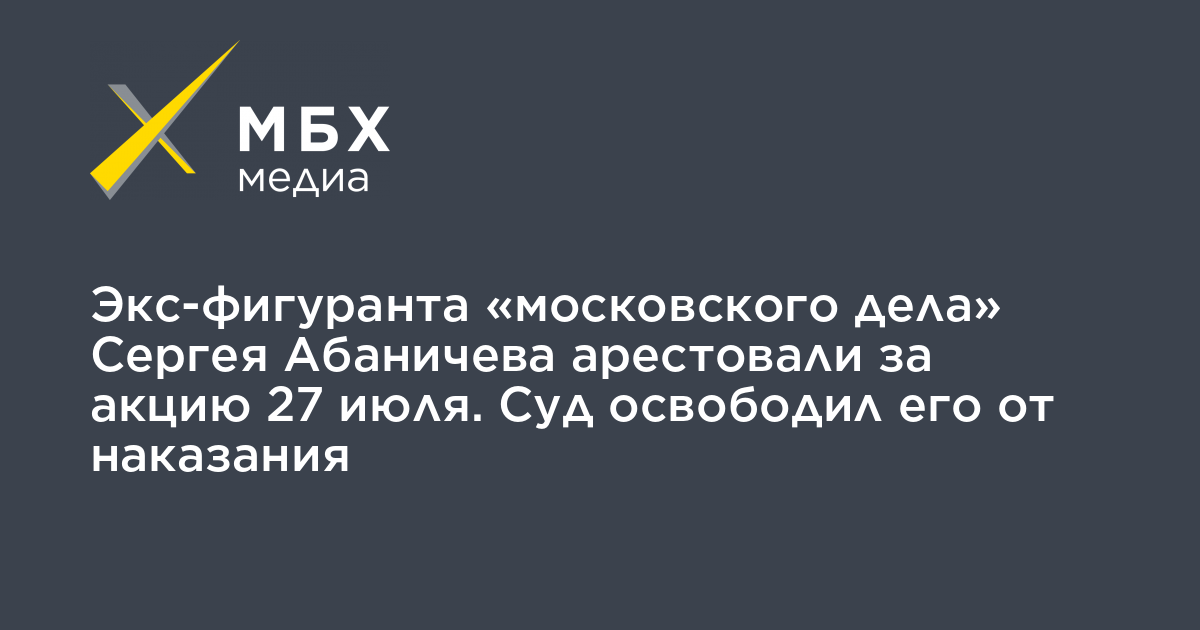 Экс-фигуранта «московского дела» Сергея Абаничева арестовали за акцию 27 июля. Суд освободил его от наказания