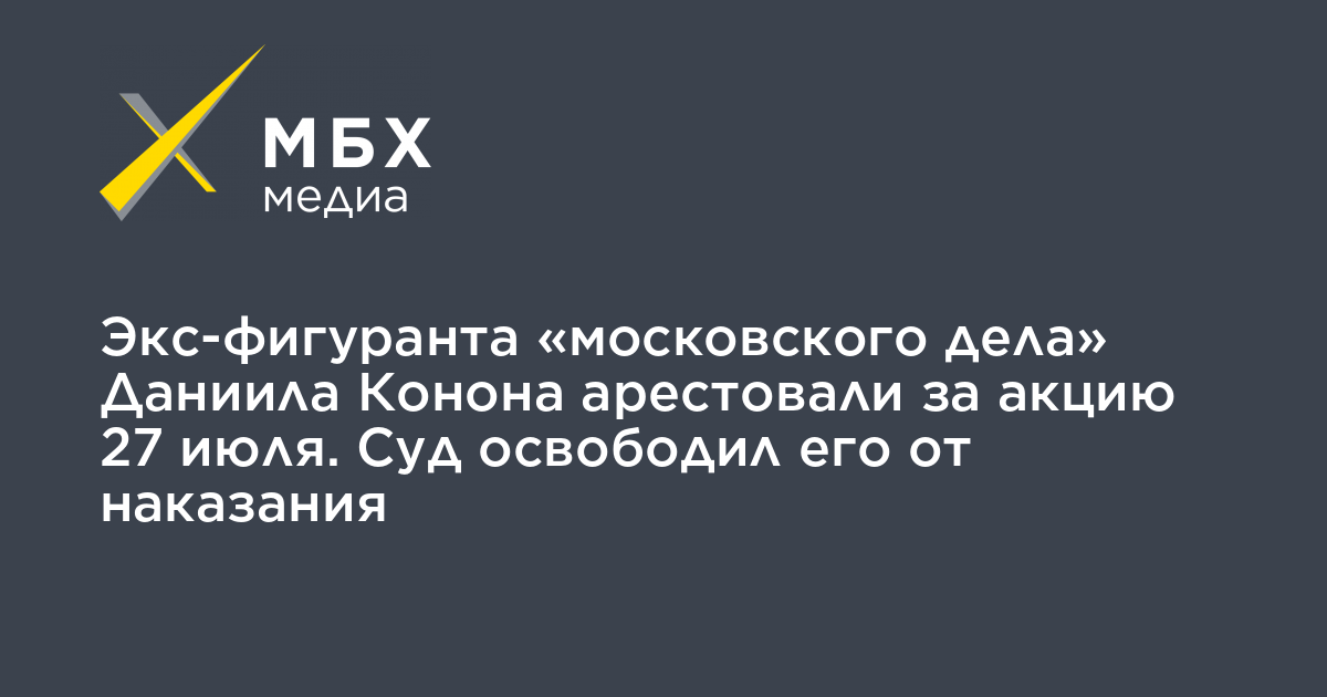 Экс-фигуранта «московского дела» Даниила Конона арестовали за акцию 27 июля. Суд освободил его от наказания