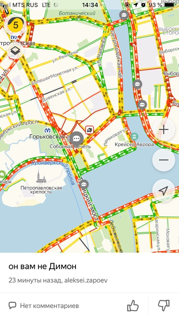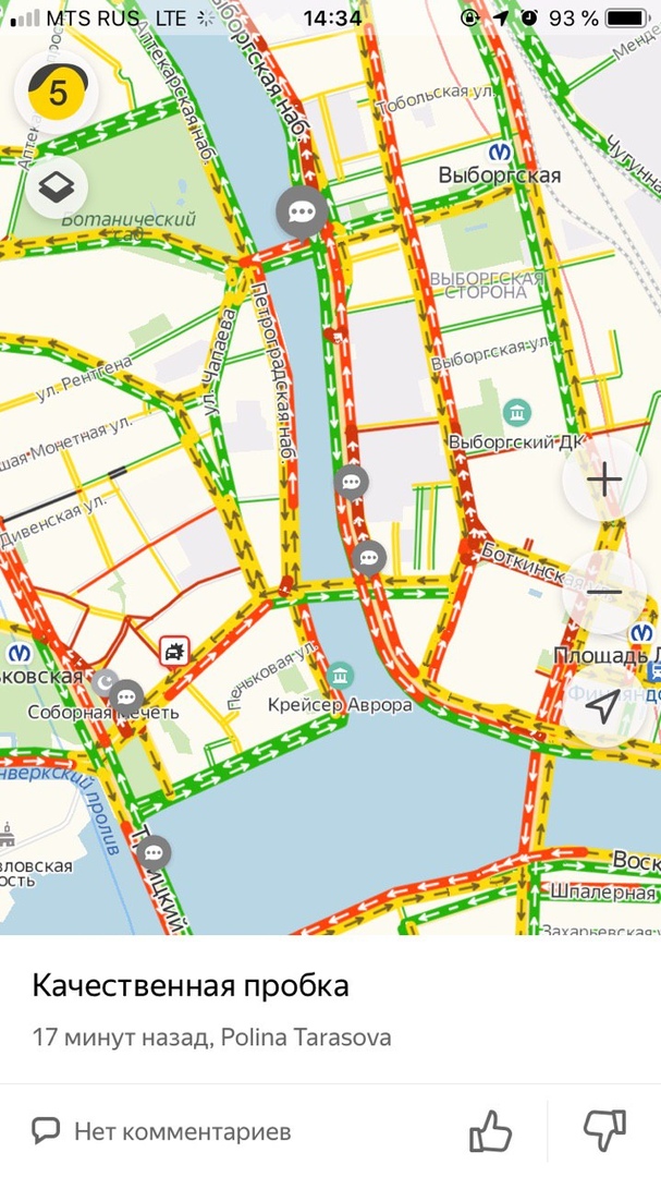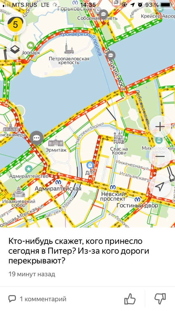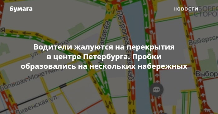 Днем 6 декабря петербуржцы жалуются на перекрытия дорог в центре Петербурга. Об этом горожане сообщают в сервисе «Яндекс. Пробки».