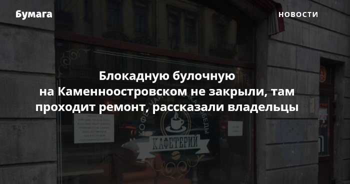 Булочную на Каменноостровском проспекте, 29, которая работала во время блокады Ленинграда, откроют после ремонта. Об этом сообщает «Петербургский дневник» со ссылкой на владельцев заведения.